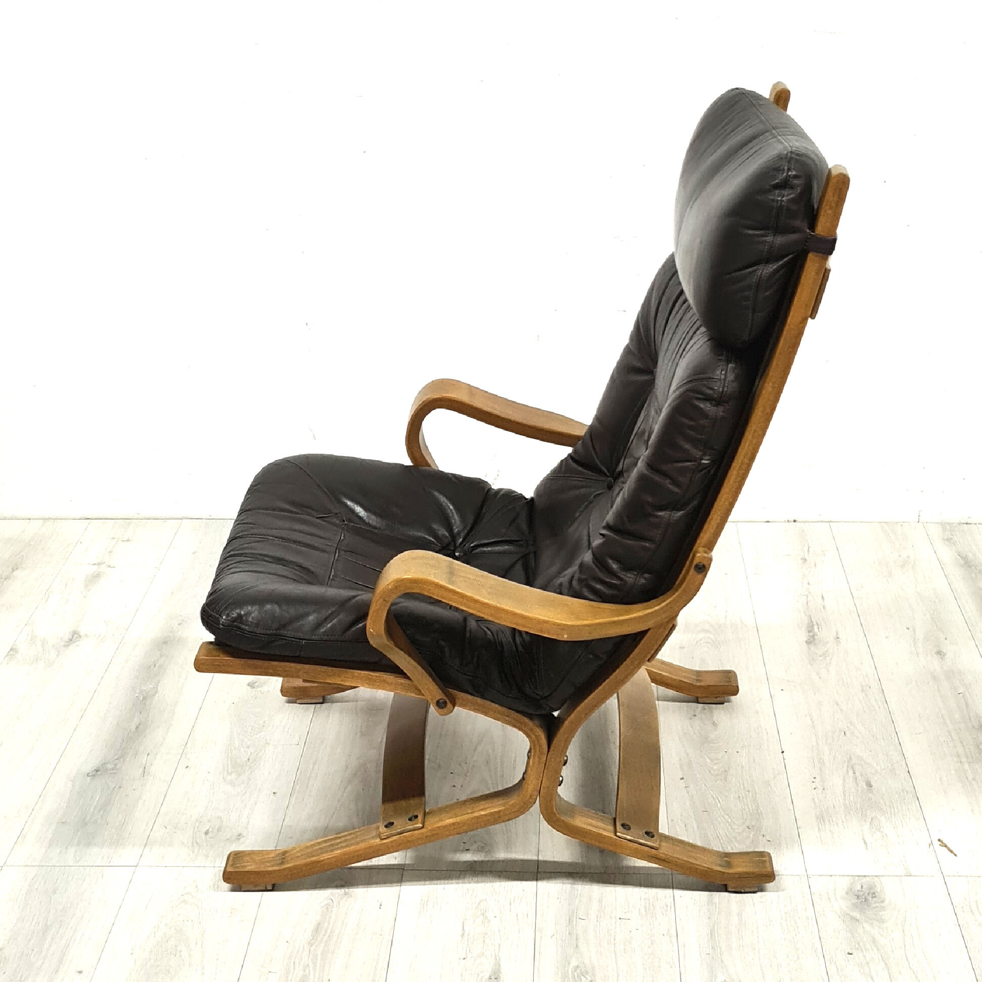 Scandinavian Mid Century Lounge Chair Bentwood And Leather 1960s Selency